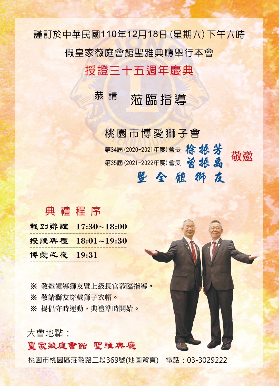 曾振禹宗長榮獲桃園市博愛獅子會2021~2022年度會長